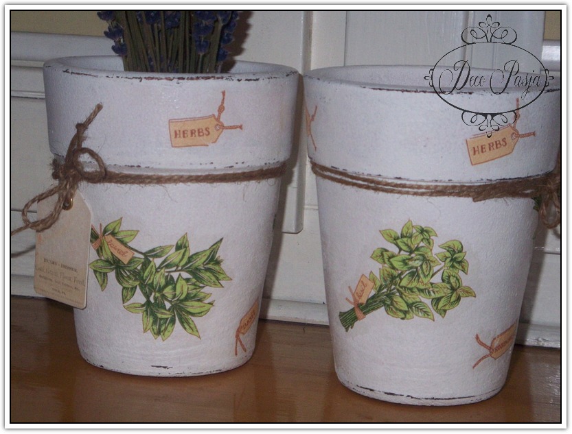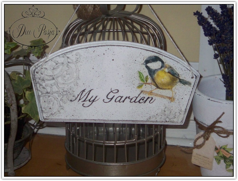 Jakiś czas temu razem z kursantkami ozdobiłam deseczkę z napisem “My Garden” oraz doniczki na ziółka.
