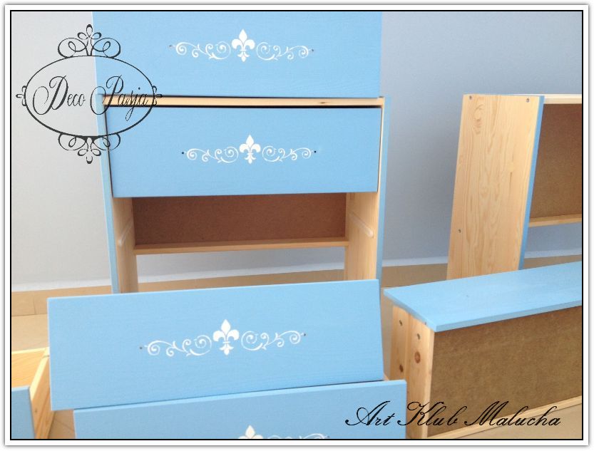 Prace w Art Klubie Malucha niebawem dobiegną końca. Dziś dokończyłam malowanie komódek, o tych tutaj jeszcze w rozsypce
