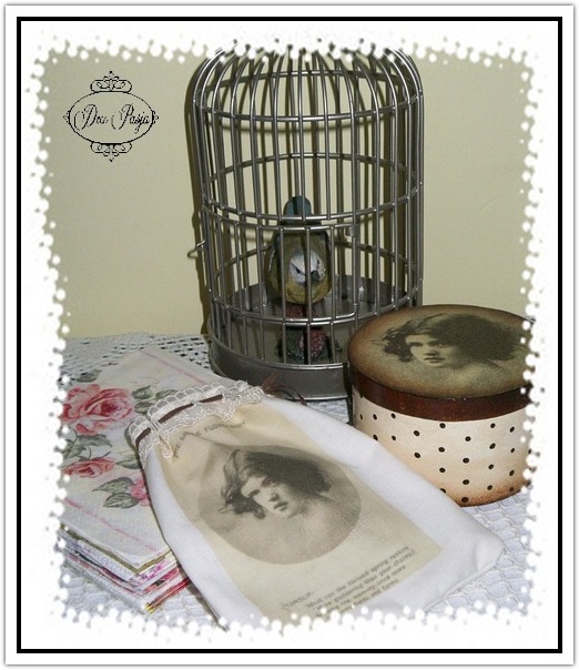 Przepiękny, nostalgiczny zestaw! Marzę o tak kobiecym woreczku na drobiazgi! Gratuluję talentu i przyłączam się do zabawy.