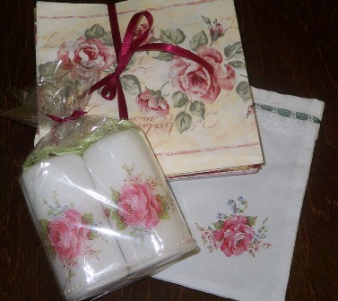 Wymyśliłam sobie, że pierwsza osoba, którą wylosuję otrzyma pobielony komplecik ozdobiony obrazkiem dziewczynki w stylu vintage (chustecznik, pudełeczko, magnesik, który może być zawieszką + serwetki).
