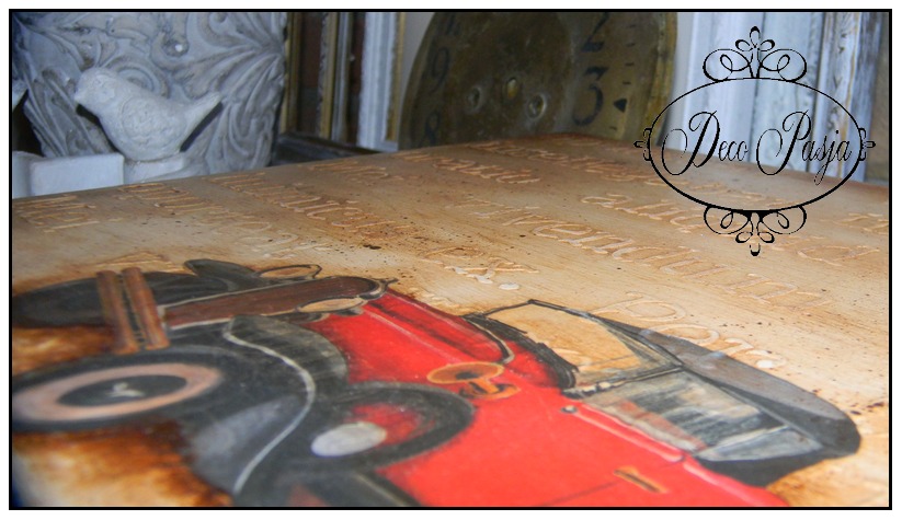 Dziękuję 🙂 Oj ja też mam problem przyznam szczerze. To pudełeczko ma być herbatnicą w warsztacie samochodowym gdzie jest czerwona ściana więc jak zobaczyłam to stare autko postanowiłam je wykorzystać… Taka prosta robota, trochę patyny, szablonik i jest 🙂