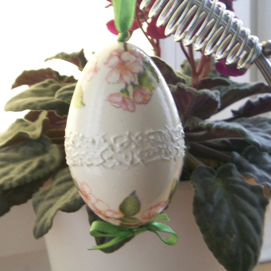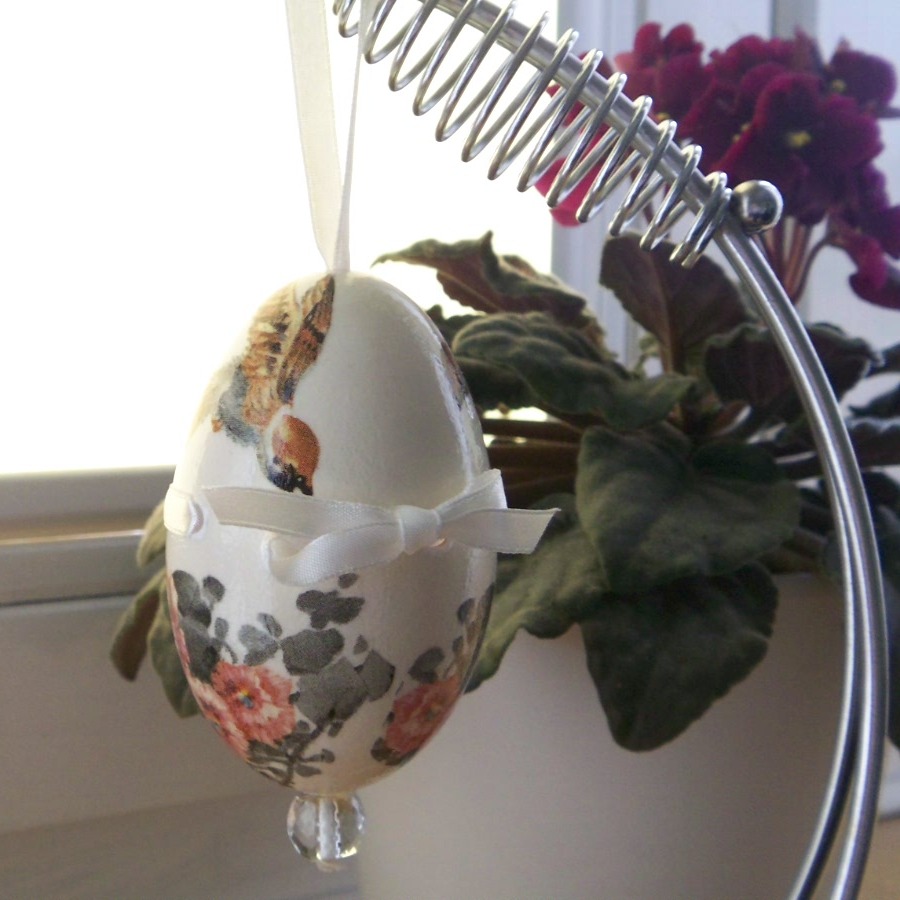 Najlepiej osadzić jajko na patyczku (dużej wykałaczce), pomalować farbą i ozdobić wedle uznania 🙂 a potem zabezpieczyć lakierem 🙂