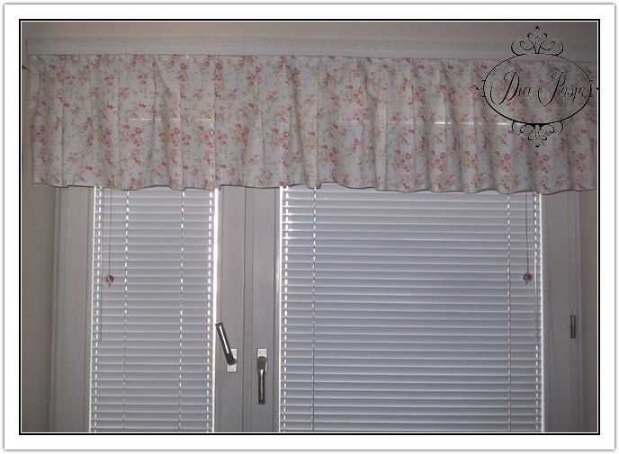 Fotel był pierwszy…ale jak go malowałam nie myślałam o różyczkowej poszewce na siedzisku…. Pomyślałam o tym dopiero wtedy, jak wymyśliłam, że uszyję sobie lambrekin do okna kuchennego. Tu problemu z szyciem nie było 😉