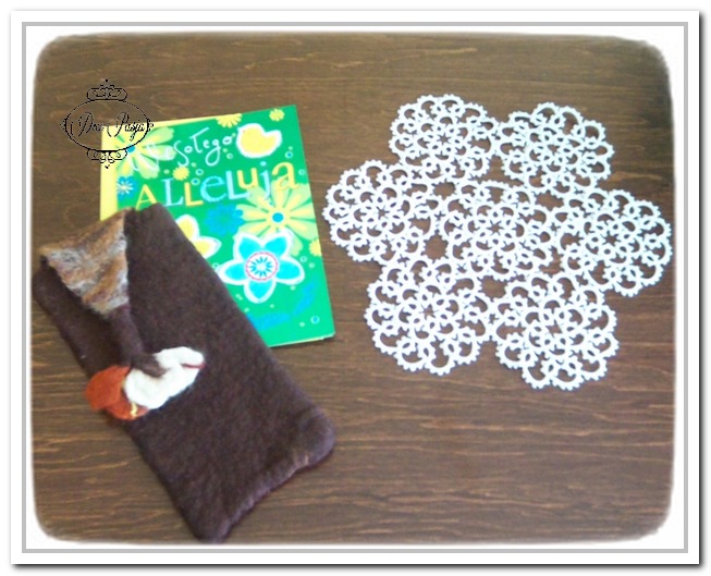 Karteczka, filcowane etui i przepiękna frywolitkowa serwetka od Eli