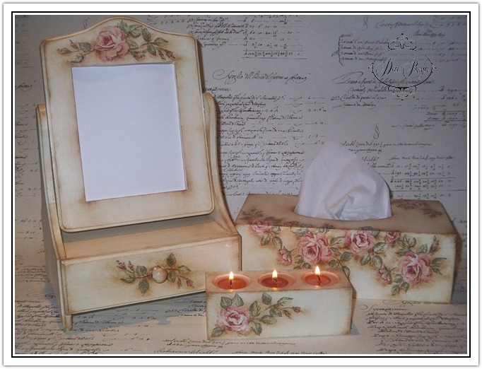 Na zamówienie dla Pani Agnieszki komplecik do sypialni – toaletka, chustecznik i świecznik na 3 wkłady tealight.