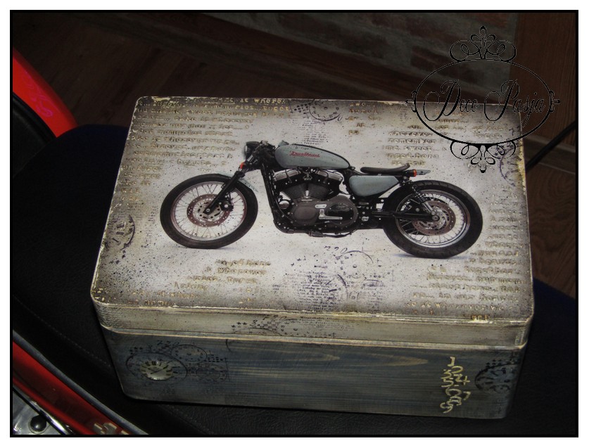 Dziękuję :* cieszę się, że kufer się spodobał. Motocykl stoi w moim salonie na poddaszu, jest przerobiony na lampkę nocną-przekręcasz kluczyk w stacyjce i uruchamiasz światła przód, tył i kierunkowskazy 🙂 Dziekuję za odwiedziny i pozdrawiam serdecznie :*