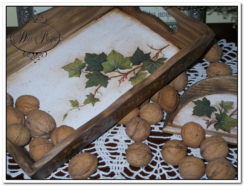Oj bardzo, bardzo podoba mi się komplet z bluszczem no cóż orzechy też lubię.