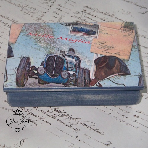 Obydwie szkatułki przepiękne! Ta z różą taka delikatna i kobieca, a druga w retro klimacie i kolor bejcy trafiony idealnie. Życzę miłego urlopu i dużo słonka! 🙂