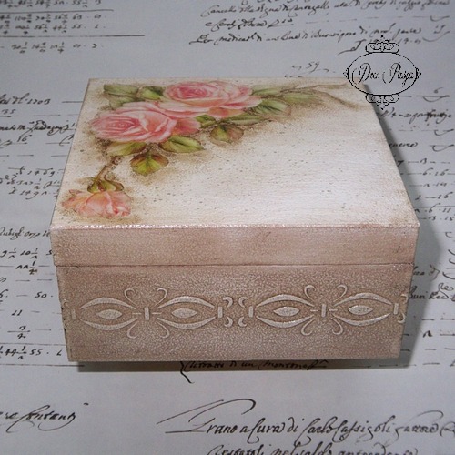 Cieszy mnie to, bo ostatnio zaczęłam się martwić, że nie potrafię zrobić jaśniejszej pracy. Ta różyczkowa szkatułka jest dowodem na to, że nie jest, ze mną, tak źle 😉 Mam nadzieję, że spodoba się i Wam :)))
